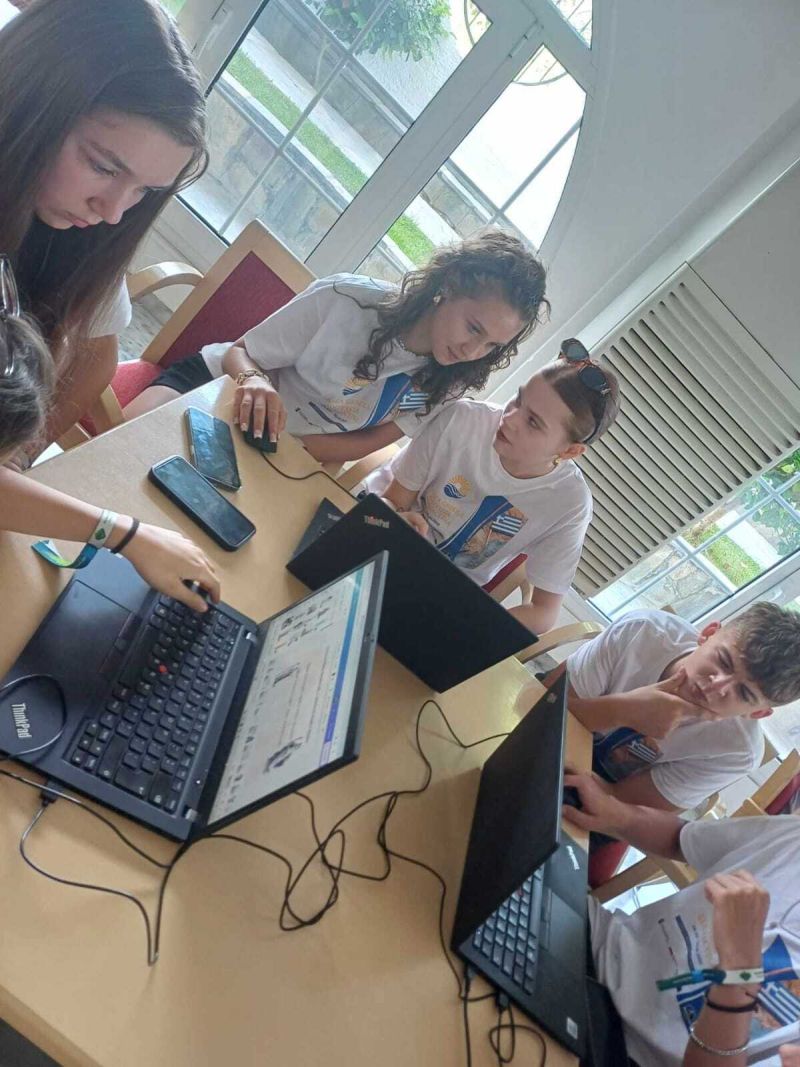 Na fotografii młodzież siedząca w dwuosobowych zespołach w pracowni przed komputerami